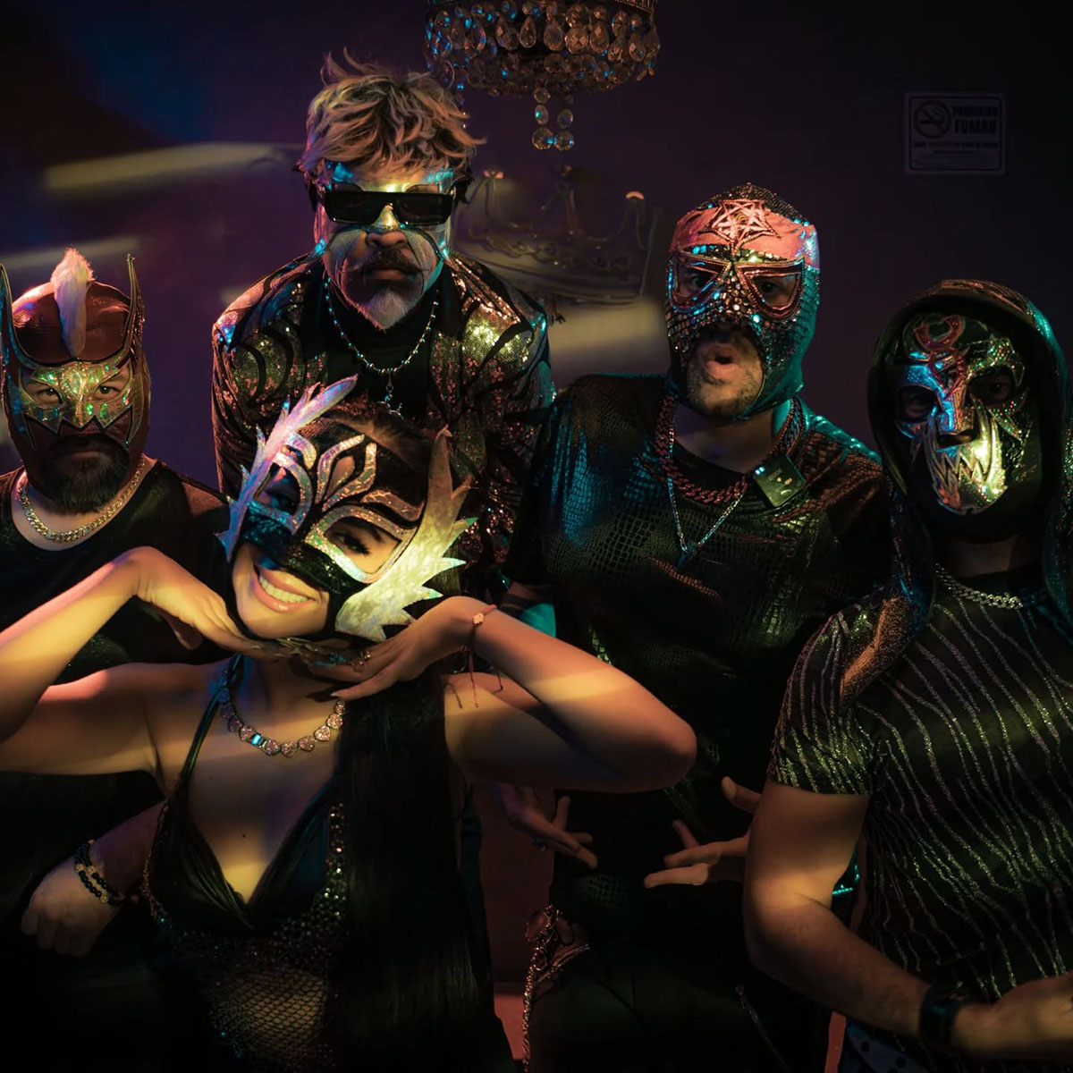 La Nueva Ola de Cumbia se especializa en “cumbializar” los grandes éxitos de los 70, 80, 90 y más allá. Con más de una década de trayectoria, han entretenido al público en innumerables espectáculos en estadios, arenas y festivales. La identidad de los integrantes de la banda se mantiene en secreto, ya que ocultan sus rostros tras coloridas máscaras de lucha libre.